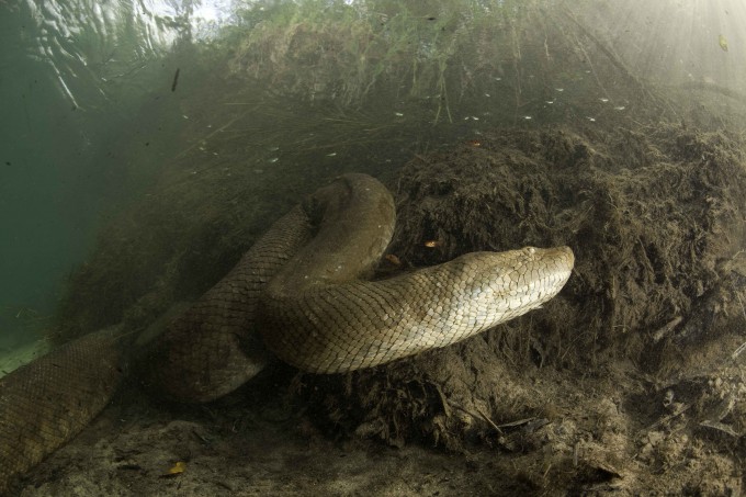 Фотографу удалось сделать потрясающие фотографии анаконды прямо в ее естественной среде обитания, под водой.
