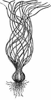 Растение это принадлежит к числу болотных и состоит в близком родстве с изолепис, которую обыкновенно держат в горшочках по углам аквариума и которой изображение представлено нами на рис. 1.4 d. Главная оригинальность Isolepis prolifera состоит в том, что на конце ее стебельков образуются, как это видно на нашем рисунке (рис. 2.29) новые растеньица. Постепенно наклоняясь, стебли эти окунаются в воду и растеньица начинают развиваться самостоятельно.