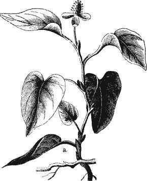 Цветы его мелкие, без чашечки и венчика, с белыми тычинками, расположенные плотными, несколько согнутыми кистями. Кисти эти от 15 до 25 сантиметров длины и на ножках, развивающихся напротив листьев в верхней части стебля.