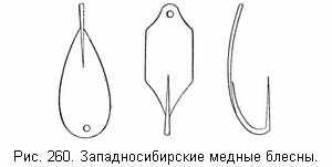 Блесна есть ничто иное, как кусок олова (реже свинца, который слишком тяжел), которому придана известная форма (изменяющаяся, смотря по местности) и в который залит одиночный или двойной-тройной крючок. Нередко также это медная, несколько изогнутая пластинка с загнутым острым концом в виде крючка, но без бородки, или же с припаянным стальным крючком.